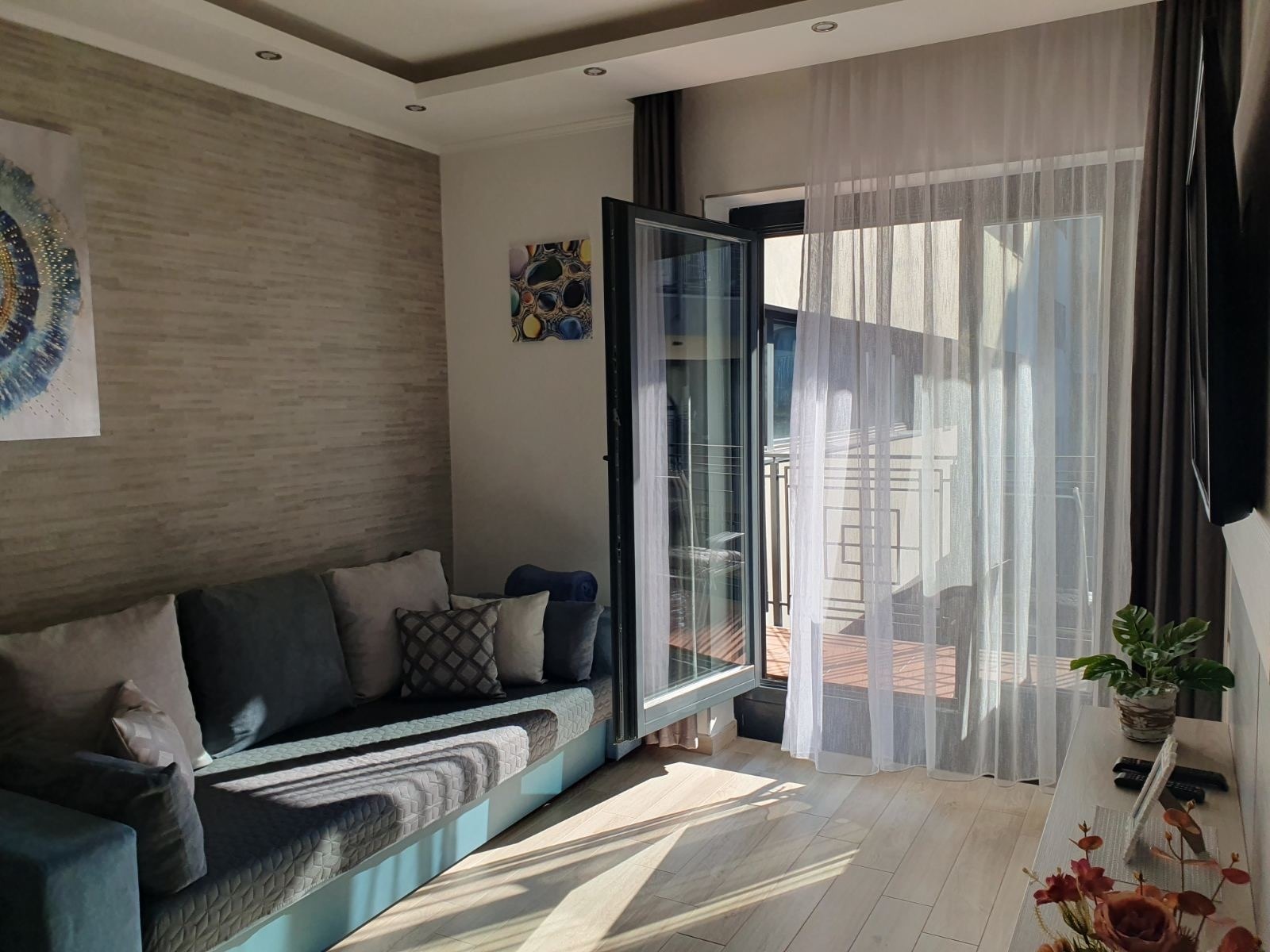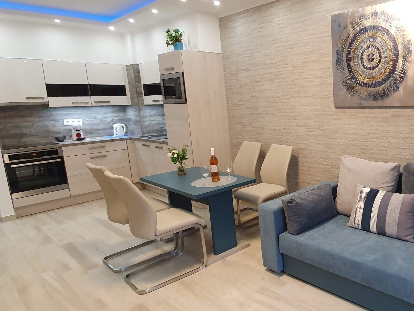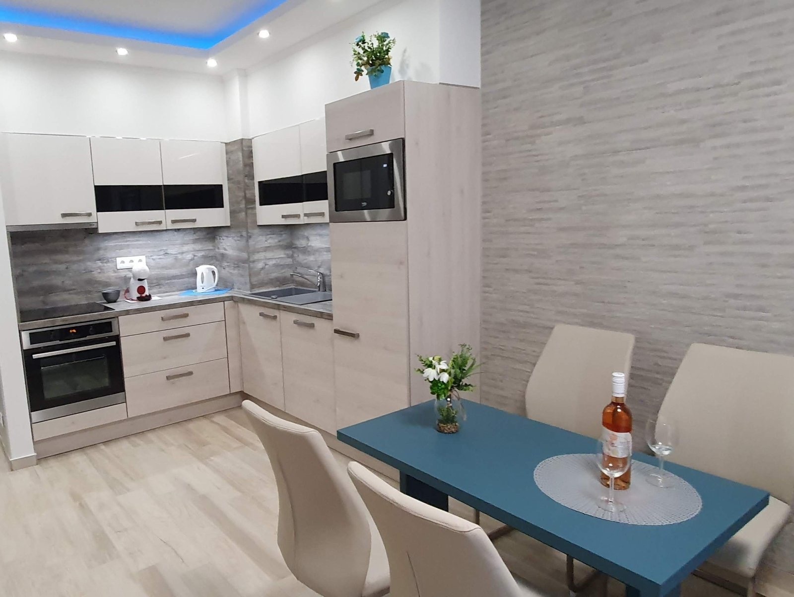 | Extrák | Amerikai konyhás Beépített konyha Légkondicionáló TV Internet / WiFi | Gépiesített | Igen |