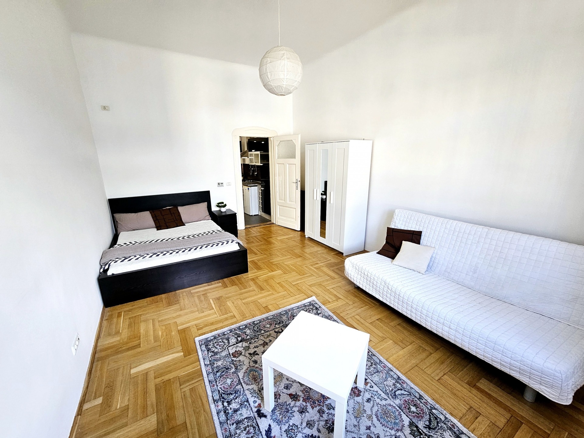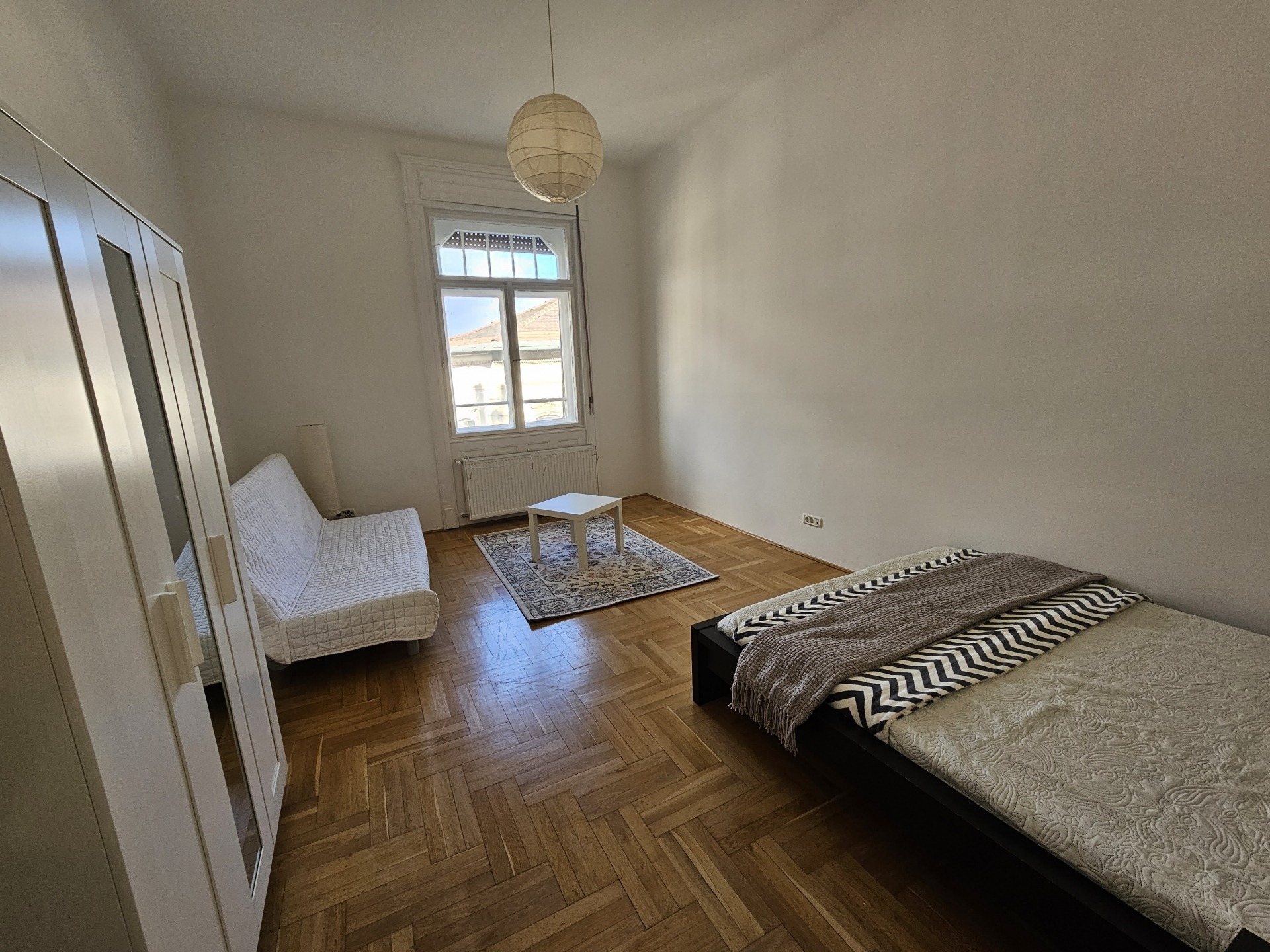 A bright apartment on the 4th floor (with elevator) is available for rent in District VII, on Dohány Street, located between Rózsák tere and the New York Café. The building is quiet, well-maintained, with a cultured residential community.